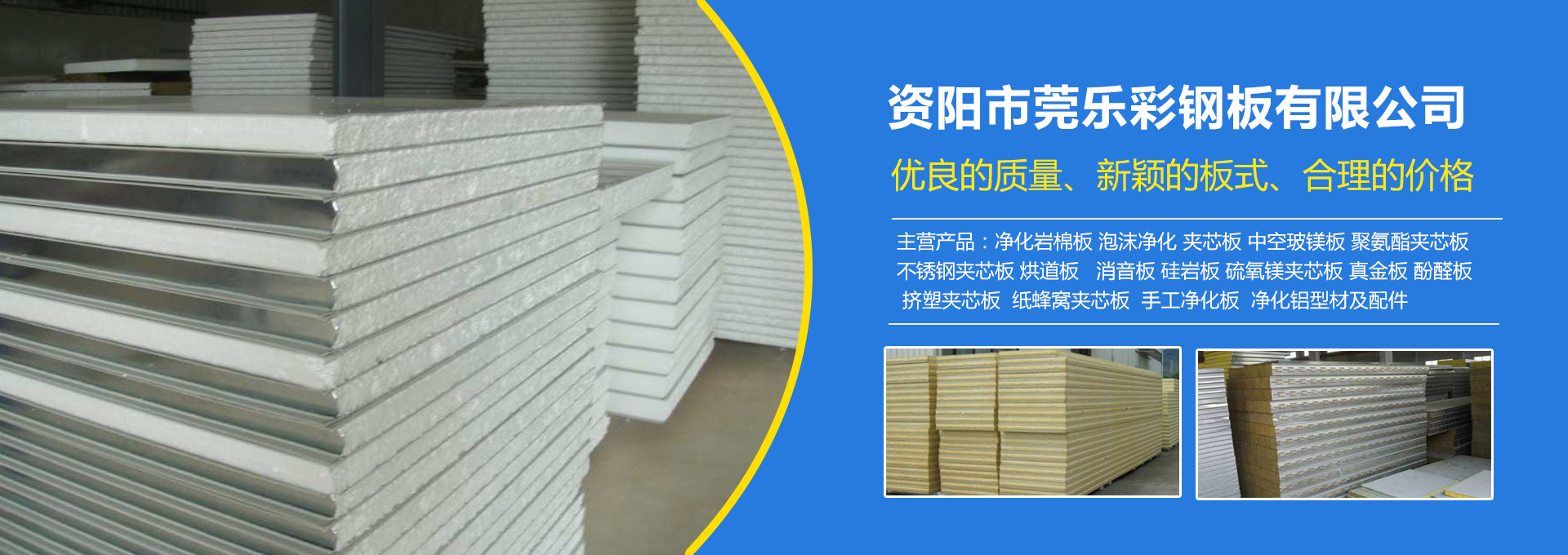 資陽市莞樂彩鋼板有限公司成立于2017年03月08日,位于資陽市樂至縣西郊工業(yè)園,廠區(qū)占地面積2500多平方,擁有多條彩鋼板生產(chǎn)線。交通十分便利,地理位置優(yōu)越。公司從事凈化巖棉板、泡沫凈化夾芯板、中空玻鎂板、聚氨酯夾芯板、不銹鋼夾芯板、烘道板、音板、硅巖板、硫氧鎂夾芯板真金板、酚醛板、擠塑夾芯板、紙蜂窩夾芯板、手工凈化板、凈化鋁型材及生產(chǎn)和銷售的新型建材企業(yè)。擁有一批專業(yè)過硬、作風(fēng)穩(wěn)健的生產(chǎn)技術(shù)人員和經(jīng)營管理精英,公司內(nèi)部良好的組織氛圍、優(yōu)良的企業(yè)文化和科學(xué)的經(jīng)營管理,使公司成為一家活力的現(xiàn)代化經(jīng)營企業(yè)。